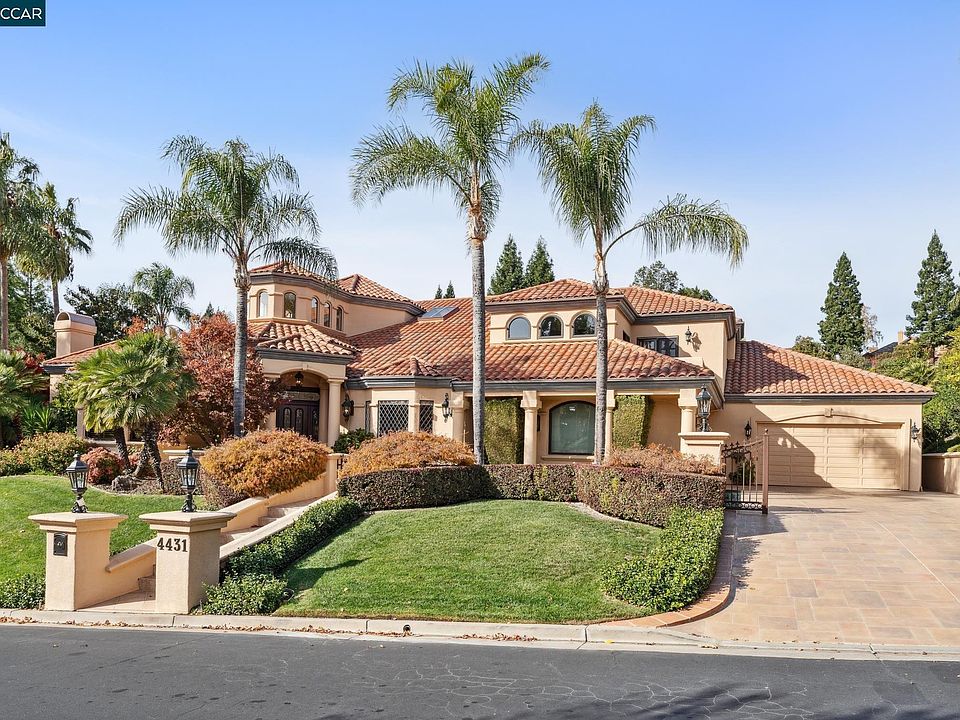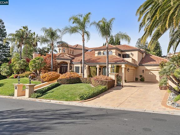 Breathtaking and iconic Mediterranean estate in Blackhawk! Conveniently situated near the East entrance, this stunning home offers unparalleled curb appeal with towering palm trees and meticulously designed hardscaping. As you step inside this 6,493 square-foot haven, you’ll be captivated by the expansive floor plan, soaring vaulted ceilings, and abundant natural light. The main level features a luxurious primary suite, a private guest suite, a formal office, and multiple elegant living and dining spaces. The gourmet kitchen, a chef’s dream, is equipped with top-of-the-line appliances, including a Sub-Zero refrigerator, two ovens, two dishwashers, and a six-burner gas cooktop. The backyard oasis awaits, with a sparkling pebble-tech pool, drought friendly landscaping, and ample patio space for entertaining. Upstairs, 3 additional spacious bedrooms and a massive loft (or potential 6th bedroom) offer versatile living options. The oversized four-car garage, workshop and gated driveway is a car enthusiast’s dream. Do not miss this opportunity to make this dream home your reality!