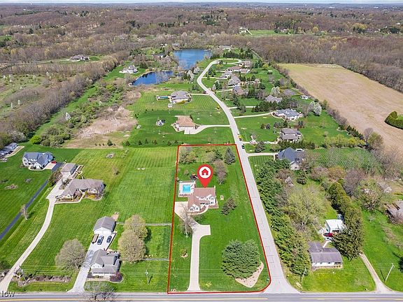 Welcome to this charming colonial-style home nestled in the serene Wolf Creek Estates neighborhood within the sought-after Highland School District! Set on a generous 1.68-acre lot this home offers a harmonious blend of indoor/outdoor living, boasting an in-ground heated pool, outdoor grilling area, retractable awning, playset, firepit area, fruit trees & bushes, common area pond fishing, etc., making this the perfect space for relaxation, outdoor activities, and entertaining. As you step into the inviting foyer adorned with wood floors, you'll immediately appreciate the warmth and elegance this home exudes. The living room serves as a cozy retreat, featuring a gas fireplace, complemented by an abundance of natural light streaming through large windows. Enjoy the expansive eat-in kitchen, complete with wood flooring, ample cabinet space, and stunning granite countertops. Convenience is key with a first-floor laundry room and half bathroom. The private home office rounds out the main level and provides a quiet space for work or study. Upstairs, you'll find the large master suite, featuring vaulted ceilings and a generous walk-in closet. The en-suite bathroom is a sanctuary of relaxation, boasting a luxurious jetted tub, a separate stand-up shower, and a double vanity. Three well-appointed guest bedrooms and a full hallway bathroom complete the second story. The partially finished basement/recreation area provides additional finished space for entertainment and/or hobbies. Whether envisioning a home theater, game room, or fitness zone, this flexible space allows you to make your dream a reality. Beyond the finished area, the basement possesses a substantial unfinished section, ideal for all your storage requirements. Upgraded systems include a Generac whole home generator, Leaf Filter gutter system, new roof (2019), and tankless water heater (2024). Easy highway access to I-77 / I-76 / 224-ALT. Don't miss the opportunity to own this remarkable piece of property!
