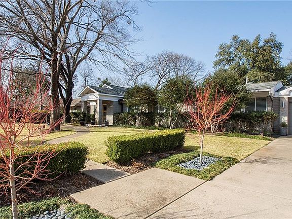 Back on market, buyers changes their mind. Set on a cul-de-sac, this soft contemporary is one of a kind. Located in Preston Hollow, close to all of the prestigious private schools, and on nearly a half acre. This updated, meticulous 1-story home has walnut built in cabinets throughout and white oak hardwoods. Open living and dinning room as you enter the window filled home. 4 bedrooms, 5 baths, amongst its great layout. Guest room has modern, walnut finished murphy beds. Master has a sitting area and custom white oak barrel ceiling, remodeled in 2013, including a spa like bathroom. Property has game room with windows overlooking backyard. Backyard includes entertaining space, green space and fabulous pool.