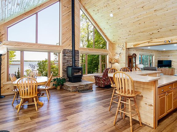 Immaculate 1 1/2 Story Home on Beautiful Shell Lake. Everything is in its place and on this well thought out property. Wonderful Great Room and Kitchen with eat-up nibbler bar, Soaring ceilings With Tongue and Groove Basswood, In Floor Heat in the newest two bedroom addition. If you are a garage guy this property has it all 3 Separate Garages with over 8 stalls. Finished and Heated workshop, Separate Wood Shed, And The Views are simple stunning, wonderful paver patio and firepit area. All the hard work is done, just come enjoy Lake Life at its best.