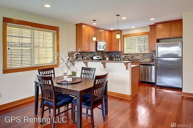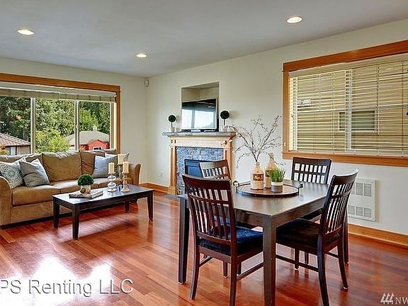 Located in the hot neighborhood of Alaska Junction in West Seattle! The master bedroom has a patio with french doors that has breath taking views of West Seattle. This home has plenty of natural light! Features an informal dining area, hardwood floors and lots of counter space. The front yard also has a patio for enjoying the Northwest summers! The location is a premium at this home.