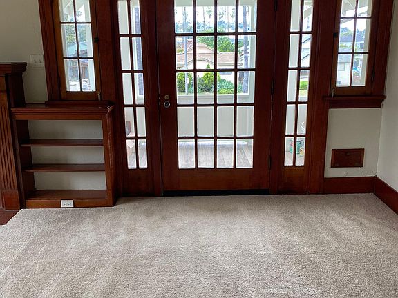 Newly painted, carpeted, spacious second floor apartment situated in a duplex with balconies, fireplace, stove, refrigerator, shower/bathtub. Fenced duplex with well maintained grounds, outdoor bbq pit and fireplace plus 1 car garage space. Wall heater, french glass windows, redwood dining room cabinet and base boards. Fully carpeted, tiled bathroom & kitchen floors, closets, cable ready, smoke alarms. Close to local goods, services, schools, recreation and transit.