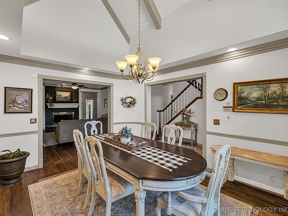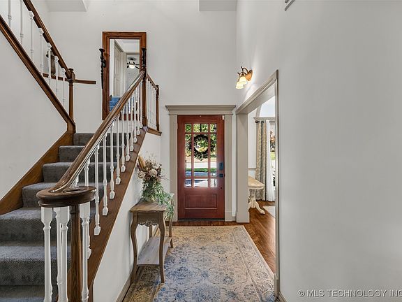*Wonderfully updated home nestled on a LUSH HALF ACRE in the desirable Thousand Oaks neighborhood and coveted Jenks Schools! FLEXIBLE FLOOR PLAN including 2 Living Areas, newly upgraded and open concept eat-in Kitchen with dual refrigerators, quartz countertops and induction cooktop. Florida Room and additional Flex Room that can offer a variety of use. Office and first floor Primary Suite. The upper level offers 3 large Bedrooms + additional Game Room. Other amenities include 2x6 walls, Burnett Windows with lifetime warranty and newer air conditioning units. Third Bedroom + ensuite upstairs has private Garage entrance offering a multi-use opportunity.   The Backyard is a peaceful retreat with a covered Patio, Pergola, Fire-Pit and lush Landscaping. Enjoy ample parking space with a side-entry 3-Car Garage plus full circle drive! *AD