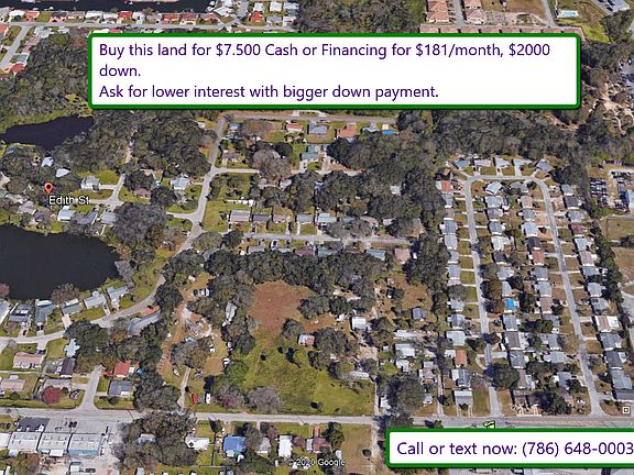Cheapest Land for sale and in the best location. This vacant lot is in Edith Street, New Port Richey. APN: 18-26-16-0110-00000-1010. This is a 0.18 acre property in a prime location nearby banks, scools, Supermarkets, restaurants, hospitals and beaches. The lot is very close to the sea and golf clubes. The lot is a Nice private street that ends in a private owned 6 acre parcel, no traffic. No HOA Buyer to verify and perform their own due diligence regarding the feasibility of their plans. Live in the city and at the same time in a peaceful neighborhood. Cash: $9,000, financing $188/month, $2.700 down. This a great opportunity to build your own home. Call or text (786) 648-0003.