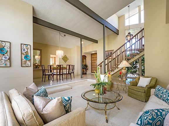 A mid-century modern, two-story home with manicured lawns and established landscaping offering an open floor plan. As you step into the front entry way, there is a step-down living room with open beam cathedral ceilings and wall-to-wall floor to ceiling glass windows with plantation shutters framing a fabulous view of the fairways of Lakewood Country Club Golf Course. A large formal dining room gives you easy access to both the kitchen and the family room with a raised flagstone fireplace and another tall glass door leading outside. The galley style kitchen makes meal preparation easy with a double oven and has a large eat-in area that is surrounded by more glass windows and a door leading outside. The ground floor has two large bedrooms, one that gives access to the outside and both have wall-to-wall closets and convenient access to a bathroom. Upstairs is a very private master ensuite with its wall-to-wall closets and a master bath. Step through the sliding glass door of the master out onto a deck overlooking the fairways to relax. All ground floor glass doors lead out to an expansive yard space with a pergola type covered patio, another large conversation area all surrounded by beautiful landscaping and wrought iron fencing for an unobstructed view of golf course and its gorgeous trees. Nearby is Lakewood Center, Restaurant Row on Candlewood and all the amenities offered by Lakewood Country Club and Golf Course. Click on the video button to see a 24 hour virtual.
