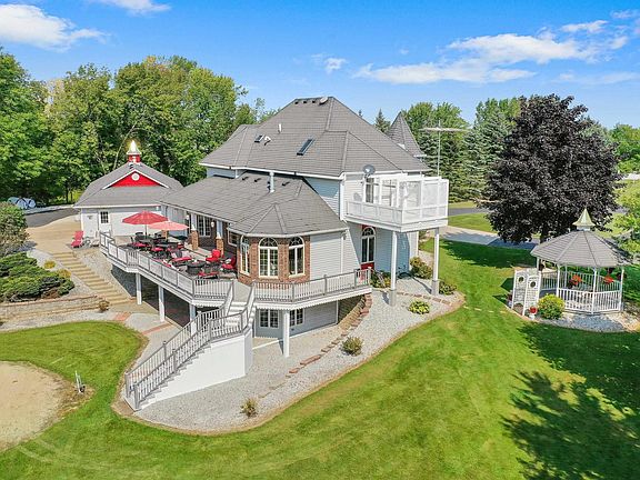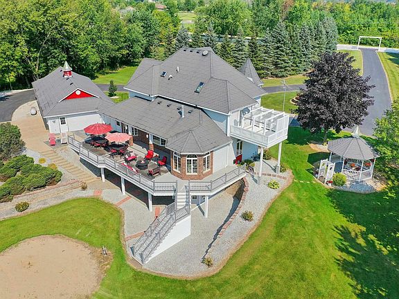 Home includes about 8 acres in a peaceful quiet country setting, lots of trees, outdoor activities and animals abundant, w/5400 feet living space, wrap around porch, lg patio, gazebo, beautifully landscaped, lots of gorgeous flowers, home is renovated and remodeled throughout. Includes 3.5 baths, 1st FL 9 Ft ceilings & oak cabinets, walk-in pantry, fireplace, LR has tray ceiling, & office/study. Walkout basement finished w/8 ft ceiling, for indoor activities, 2nd FL this home includes laundry room & overlooking sundeck, 2 walk-in closets. Attached 4+ Car Garage. MANY EXTRAS INCLUDED. An additional Commercial Building w/ about 28,000 square feet that includes office areas & warehousing, or huge storage, business use, & also up to 90+ acres of land can also be purchased from same seller.