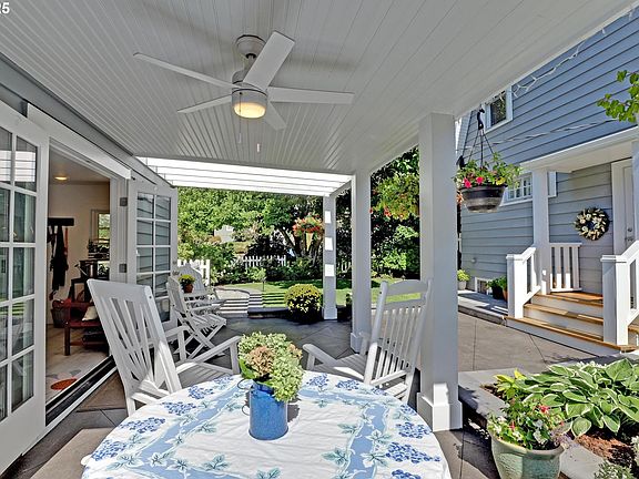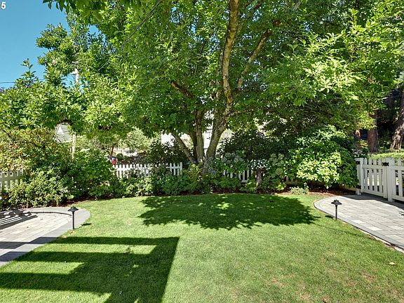 A storybook Colonial on an oversized corner lot in Beverly Cleary/Grant school neighborhood. This special home surrounded by lush gardens feels so good. Ideal floor plan with vintage features including arches, crown molding, and hardwood floors throughout the home. Extensive updates include seismic upgrade, wiring, plumbing, gas HVAC system, gas fireplace, and roof (2015). A newly (2024) renovated detached garage offers single car parking with EV charging and a unique hospitality/kitchenette/studio/garden room opening to the inviting covered patio for year-round entertaining. The east garden benefits from morning sunlight for growing vegetables and flowers. This desirable location is convenient to stores, restaurants, services, and parks. [Home Energy Score = 3. HES Report at https://rpt.greenbuildingregistry.com/hes/OR10241950]