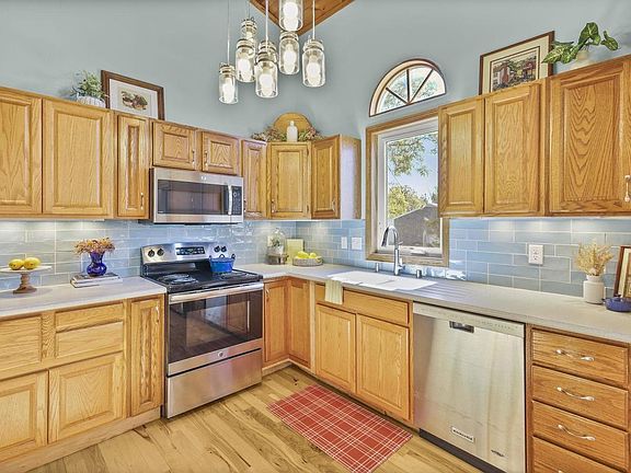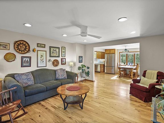 Set on almost 14 scenic acres, this versatile property combines comfort, flexibility, and rural charm. The land is mostly tillable with wooded areas, pasture, and a small creek - ideal for gardening, animals, or recreation. Two impressive metal sheds offer exceptional storage and workspace. Inside, enjoy newer hickory floors in the main living areas, updated flooring and tiled shower in the primary bath, and other thoughtful updates! The walk-out lower level enhances livability with a second kitchen, rec room, full bath, and patio doors opening to the yard and deck, while the main-level family room also opens to its own private deck - perfect for relaxing or entertaining. A rare opportunity to enjoy country living with space, style, and endless potential!