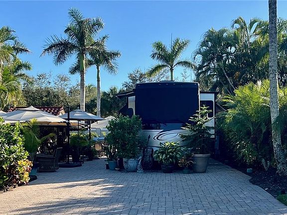 Move-in ready off-lake site located towards the east end of Pelican Lake Motorcoach Resort. This site boasts northern exposure and many upgrades including an expanded pavered site, tropical landscaping and hedges creating privacy and a tranquil setting. The large outdoor area is great for entertaining or using the privacy to relax and unwind. All furnishings, umbrellas, built in grill, side burner, side granite table, and so much more come with this site! Coach house Details:The coach house on this property is 100 square feet and the interior is finished and includes washer & dryer, undercounter refrigerator, toilet, sink with vanity, storage cabinets, and overhead storage. The exterior has new fabricated tile roof, wrap around black awning, roll down extended storage area behind.