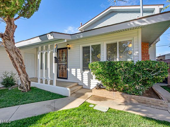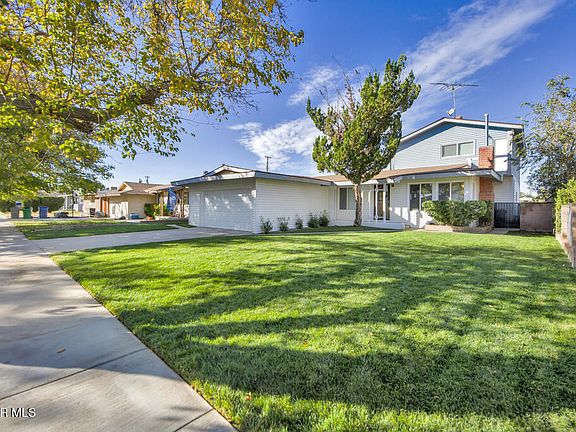 This unique and beautifully maintained two story 1950s home offers over 2,300 sq. ft. of versatile living space, featuring three bedrooms downstairs including one with a private en-suite bathroom with a walk-in shower and an additional primary retreat upstairs. The second level also includes an additional bedroom with built-in desk and cabinetry, creating an ideal space for a home office, study, or cozy reading nook. Thoughtful upgrades throughout the home include insulated vinyl siding, double-pane windows, and new carpet (2025). The spacious family room features laminate flooring and custom built-ins, while the separate living room provides added space for gathering and entertaining. The kitchen offers a gas stove, dishwasher, garbage disposal, lazy Susan, Formica countertops, and a stainless-steel refrigerator. Updated bathrooms include modern vanities and refreshed fixtures. Additional highlights include central HVAC with a newer A/C unit, a 1-year-old water heater, updated thermostats, block-wall fencing with iron gates, and a garage with an automatic door and laundry hookups. This wonderful home is easy to show, an opportunity you don't want to miss!