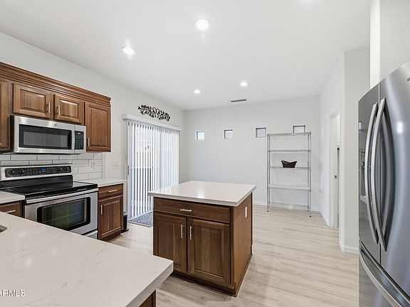 Move-in ready in Desert Cedars! Spacious 4-bed, 2.5-bath home with loft and flex room offers 2,505 sq ft and standout updates. Two brand-new Goodman HVAC systems (2.5 & 3.5 ton, Oct 2025), epoxy garage floor, new upstairs carpet, and stainless-steel appliances including a French-door refrigerator. Kitchen showcases white quartz counters, subway backsplash, island seating, and walk-in pantry. Bright great room opens to a north-facing covered patio and grassy yard with mature trees — ideal for relaxing or entertaining. Loft up, large primary suite with double sinks, tub, and shower. Clean, neutral interior ready for your touch. Excellent lot near Copper Sky Park and shopping!