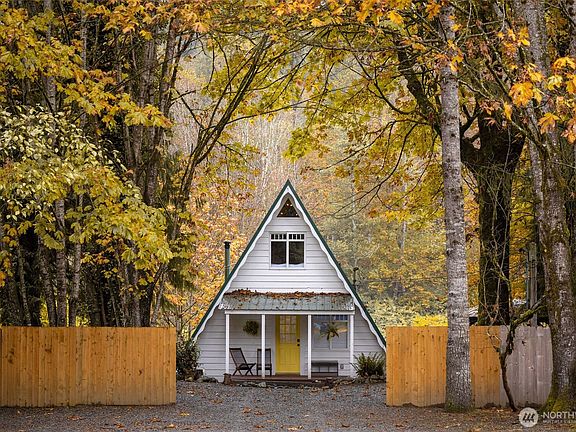 A true storybook riverfront A-frame! Set on a private half acre with direct riverfront access, this remodeled cabin is as charming as it is profitable. Inside, modern details, open layout, and updated kitchen & bath create the perfect getaway feel. Outside, unwind on the new deck or in the custom cedar hot tub with the river as your backdrop. This has been a successful short-term rental for years and comes fully furnished, ready to continue operating. From your own private beach to nearby hiking, fishing, Index climbing, and Stevens Pass skiing—this iconic A-frame delivers the quintessential PNW lifestyle and investment in one. Financials available upon request.
