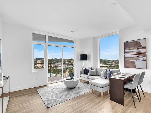 VIEW, VIEW, VIEW! This stylish 1-Bedroom, 1-Bathroom condo at the Alaska building offers 673 sq.ft. (580 interior + 93 balcony) with breathtaking city and ocean views. Featuring a functional layout, premium appliances with soft-close cabinetry, central A/C, in-suite laundry, parking with rough-in EV charger, and a storage locker. Available at $2,550 unfurnished or $2,700 furnished (3-month minimum). Residents enjoy exceptional amenities including a fitness centre, outdoor BBQ/firepit, games room, yoga studio, and social lounge with kitchen and terrace. Perfectly located just steps to Brentwood SkyTrain and Amazing Brentwood Mall, with easy access to Metrotown, Downtown, and YVR.