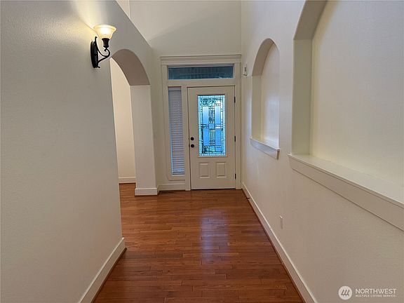 **Buyers Delight!**This Northwest Contemporary 4BR/2.5BA home with solar panels for lights only is freshly painted, clean, and move-in ready. The main-floor primary suite offers comfort and convenience, while earthy hardwood floors and soaring 20+ ft ceilings in the formal dining room add warmth and style. The kitchen features tile countertops, a spacious island, and a bright nook, opening to the living room with a cozy fireplace ready for your TV setup. Upstairs getaway with five versatile bedrooms, there’s room for everyone—guests, office, or hobbies. Near JBLM with easy access to schools, shopping, dining, and outdoor adventures, this home combines space, function, and Northwest flair for relaxed and inspired living every day.