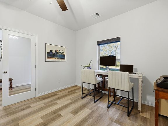 The primary suite offers a private retreat with a large en-suite bathroom and walk-in closet, while the other 2 bedrooms are located on the opposite side of the home providing the perfect floorplan for the entire family! YOU WILL APPRECIATE THE LARGE OFFICE OR FLEX SPACE CONVENIENTLY PLACED NEAR THE ENTRANCE OF THE HOME WHICH IS PERFECT FOR THE HOMEOWNER WHO HAS A HOME OFFICE. Buyers will certainly enjoy mornings on the covered patio that extends the entire length of the home overlooking a scenic wooded parklike landscape and your very own large, fenced backyard — ideal for kids, pets, or even a future pool!