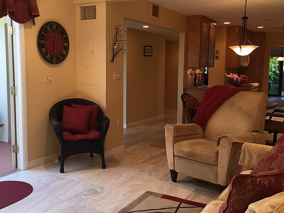 STUNNING!!... UPDATED SPACIOUS LAYOUT, LARGE CORNER LOT, END UNIT, ATTACHED VILLA, w/ A SINGLE FAMILY HOME FEELING! Lots of privacy...Entertain and BBQ from your screened in lanai, W/ French double doors that open to living area. Deep one car attached garage. Recently REMODELED with custom maple cabinets, pantry, granite throughout, stone backsplash, new lighting, porcelain tile. Hurricane windows and sliding doors. Custom window treatments, freshly painted, newer carpet. UPSCALE BATHS! Vault...