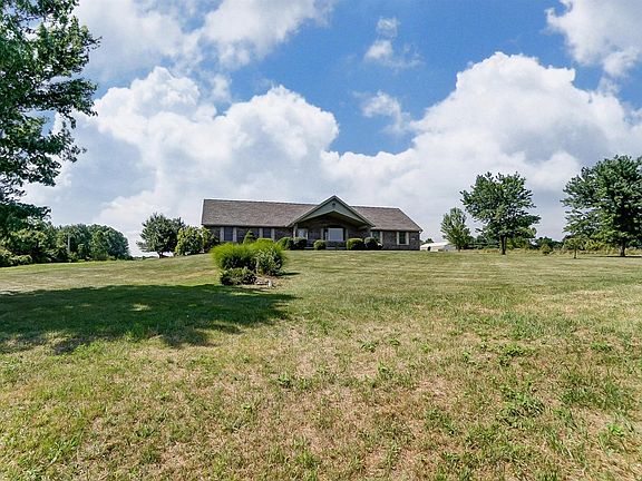 Mini farm on over 5 ac. complete w/ livestock barn w/electric & water including fenced pasture. Open floor plan, brick ranch w/ full partially finished base w/walkout. Roof replaced 2017. Completely handicap accessible, 3 car attached gar/3 car detached w/tall bay. Too many details to explain. Must see! Won't last long!!