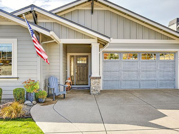 Amazing views from this immaculate, custom built, single-level home located in the 55+ Silver Oaks community. One of the best lots in the development; the backyard oasis is private from the other homes. This 2019 built home is loaded with extras. It has upgraded hardwood floors throughout, gas firepit with stone pavers, covered pergola, electric car charging station, beautiful turf lawn and a large patio area overlooking the valley. The interior has an island kitchen with quartz countertops, gas fireplace, tile in bathrooms and laundry room, vaulted ceilings, custom cabinets, ample storage, upgraded light fixtures and an open, bright floorplan. Some items that are included in the sale are the refrigerator, two TV's, ring camera system, and the custom gas firepit with surrounding adirondack chairs. It is Earth Advantage Certified for premium energy efficiency. This home is perfect for entertaining and delivers ease, comfort, views and modern convenience.