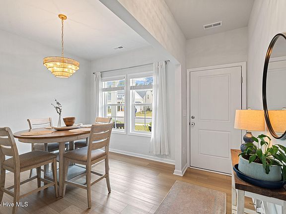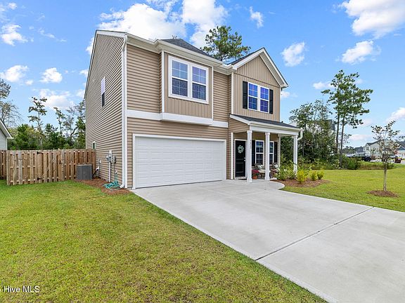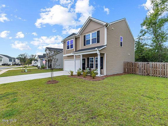 Welcome to 4433 Parsons Mill Drive, a better-than-new home in the desirable Parsons Mill Farm community of Castle Hayne! Built in 2023, this home shines with thoughtful upgrades and timeless style. The bright, open-concept main level features a beautifully upgraded kitchen with tile backsplash, crown molding on the cabinets, and custom built-ins with additional storage in the living room. A fully fenced backyard creates a private space for pets or play.