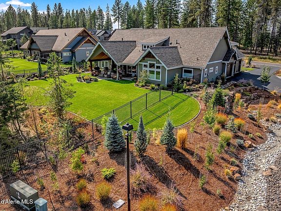 LUXURY, LIFESTYLE, AND LOCATION. Situated on a beautifully landscaped half-acre lot in the private, gated community of Rimrock Meadows, this 3,155 sq ft residence showcases 4 bedrooms, 3.5 bathrooms, plus an office and spacious upstairs bonus room. Step inside to an inviting open-concept layout with picture windows, vaulted ceilings, abundant natural light, and seamless flow—ideal for entertaining or everyday living. The chef's kitchen impresses with a Wolf range oven, granite countertops, tankless reverse osmosis filtration, and an instant hot water system. The dining and living areas feature engineered hardwood floors, solid doors, gorgeous trim and cabinetry, and a warm, cohesive rustic luxury aesthetic throughout. The primary suite is a private retreat, boasting a spa-like bath with a heated tile floor, freestanding soaker tub, frameless glass shower, dual vanities, undermount lighting, and a huge walk-in closet. Enjoy the convenience of a zero-step entry, whole-house air filtration system with purifier, and thoughtful upgrades. Outdoors, the property is equally impressive with lush year-round landscaping, rough-cut custom cedar garden beds, a fenced backyard, and an oversized firepit perfect for gathering under the Idaho stars. Experience the joy of living with proximity to Hayden Lake, Avondale Golf Course, and Honeysuckle Beach where refined design meets relaxed North Idaho living.