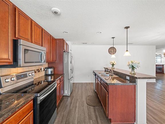 This well-maintained 3-bedroom, 2-bathroom single-family home blends comfort, convenience, and thoughtful design in one of Wesley Chapel’s most sought-after communities. Step inside to discover an inviting open-concept living and dining area, ideal for both daily routines and hosting guests. The kitchen features generous cabinet and counter space, designed to make meal prep efficient and enjoyable. The primary suite offers a private retreat with a walk-in closet and en-suite bath. Two additional bedrooms provide flexibility for guests, a home office, or hobbies. A dedicated laundry area and two-car garage add everyday practicality. Relax outdoors on the covered patio, overlooking the fully fenced backyard—perfect for casual evenings or weekend get-togethers. The landscaped lot adds curb appeal and enhances the home’s welcoming feel. Living in Brookfield Estates means access to community amenities and a prime Wesley Chapel location close to shopping, dining, healthcare, and major commuter routes.