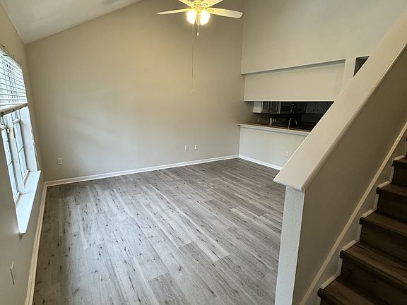 The downstairs bedroom opens to a private patio with an exterior storage closet. Washer and dryer included. Small adult pet considered with fee. No indoor smoking. Community pool and basketball court on-site.