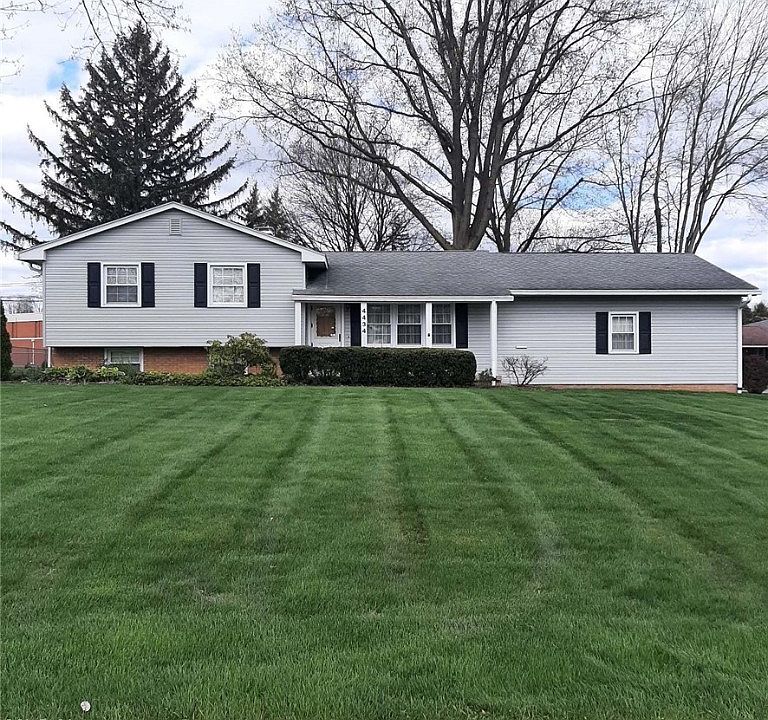 Check out this Austintown beauty located on a large corner lot! It features many exterior improvements, most made within the last 10 years. New gutters with gutter guards keep the water flowing to the oversized 3" X 4" downspouts. The home looks nearly new with the maintenance-free vinyl siding, newer exterior and garage doors, and vinyl replacement windows with muntins for a touch of class. The 2 car garage is oversized with plenty of room on the sides for your storage needs. Inside, you'll enjoy such kitchen conveniences as a built-in microwave, dishwasher and garbage disposal. The main level sports the original hardwood flooring in excellent condition in the large living room and dining room. Step out of the dining room through the sliding patio door and enjoy the sunshine in your very own sunroom. When you're ready to settle in for the night, head to the upper level where you will find the three bedrooms. Under the carpeted rooms, you will find original hardwood flooring to match the main level. Also on this level is a full bath with a walk-in tub. The lower level has yet another full bath, a small room that can be a fourth bedroom or office, and a large family room for more secluded entertainment. The basement level has plenty of room for storage as well as your laundry area and workbench. This is a lot of home for the money. All it needs is a new owner's personal touch!