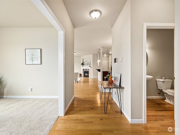 Corner Lot, A/C, Mountain View, Park View & many neighborhood amenities! Welcome to the North Lacey community of Edgewater! This meticulously cared-for home sits on one of the 3 community parks, & is just 1 block away from the neighborhood walking trail to the beach of the Puget Sound. Corner lot provides an extended backyard w/ new updates including artificial turf (also great for pets,) allowing low-maintenance summers & mud-free winters. This home's interior boasts hardwood floors, gas fireplace, granite counters, oversized den, second-floor laundry rm, lots of storage, spacious bedrooms, 5-piece primary ensuite w/walk-in closet, A/C, & 2-car attached garage. Don't miss the gorgeous view of Mt. Rainier from the front upstairs bedroom.