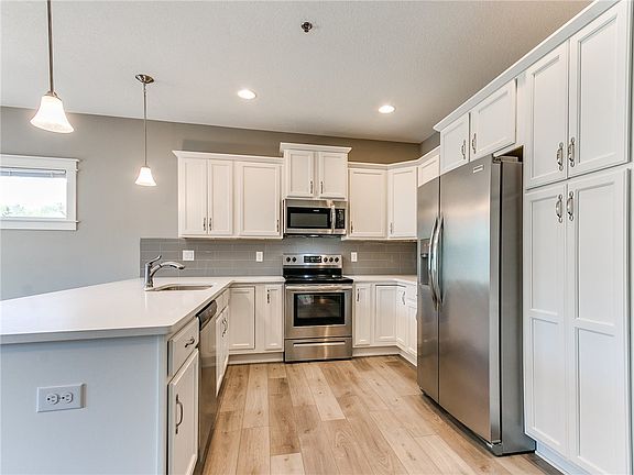 Gorgeous ranch townhomes for sale! This 2 bed/2 bath end unit features an open concept floor plan, split beds on the main level, LVP floors throughout the living area/kitchen, quartz countertops, a fireplace, and a dining area, in addition to a large breakfast bar and 1st floor laundry. The owner's suite has tray ceilings, a private bath, a step in shower and W/I closet. The lower level is huge and ready for your future finish. Do it your way! It has potential for another large living area, a full bathroom(already stubbed), a 3rd bedroom or even 4th, still with plenty of space for storage. Enjoy time relaxing on the covered front porch or get some some sun on the back patio. The builder has a special eye for detail you'll notice right away with the stone pillars and contemporary built architecture. Remaining tax abatement! All appliances stay. Association covers lawn care, snow removal, irrigation, and exterior maintenance.
