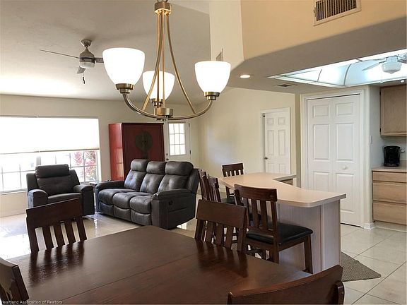 Great family home located in Orange Blossom Estates. 3 Bedroom/ 2 Bath, 2 car garage. Split floor plan features an open concept, kitchen has plenty of cabinet and counter space, breakfast bar, plant shelves and a large living room. Master bedroom has a huge walk-in closet, vanity with dual sinks and spacious shower. Private porch with a hot tub that is included. Newer roof (2015), AC (2015), custom blinds, fixtures, tile in kitchen area and living room recently updated. This home is located in a quiet neighborhood. Move in ready. Furniture package available.