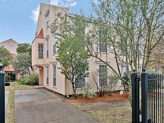 Recently updated townhouse style condo on gated, tree-lined grounds with a pool! One block from Magazine Street and Napoleon in an excellent association of 8 total units in 4 buildings. Long driveway with remote controlled gate. New cabinets, countertops, stainless appliances and full size washer/dryer in the kitchen. Reglazed tubs, new cabinets and marble in the bathrooms. Entertain with a spacious dining room and wet bar in the living room. Large, floored attic on 3rd level. New carpet upstairs and new roof installed in the last year. Two bathrooms upstairs, one half bath downstairs in entry foyer.