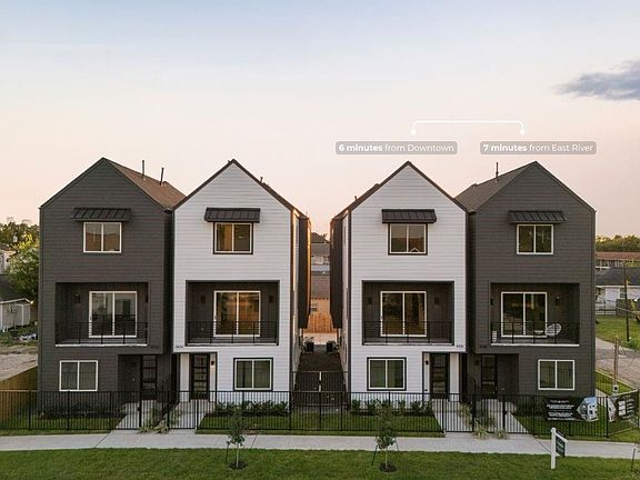 Experience unmatched luxury just 5 minutes from Downtown Houston in these 4 new homes built for energy efficiency & modern living. Located in the rapidly growing 5th Ward, you’re only minutes from East River’s golf course, Bumpy Pickle for pickleball & a mix of new restaurants & coffee shops. Built with 2x6 framing, each 4-bed, 3.5-bath, 2,166 SF home features Taj Mahal quartz throughout. The chef’s kitchen offers a 36" 6-burner Bosch gas range, microwave drawer, walk-in pantry & double waterfall island with farmhouse sink. European flat-panel cabinetry, floating shelves with integrated channeled LED lighting & a dry bar to elevate your entertaining space. The living room features a fireplace & opens up to a covered balcony, while the primary suite boasts vaulted ceilings with views of the downtown skyline, a spa-inspired bath & a private patio. With two covered patios, NO HOA, fenced yard & premium finishes, this home delivers a level of design rarely found at this price point.