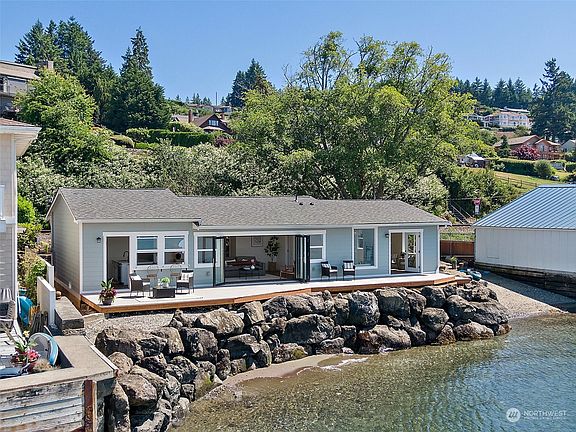 Take a stroll down the path to your tranquil beach getaway. Unbelievable views coupled with a great layout, amazing light and stunning features. Walking through the door, you're immediately greeted by the magnificence of the Puget Sound! Every detail has been designed for relaxation, luxury, and an appreciation for the beauty Washington has to offer. Protected above the professionally engineered 10-man bulkhead, enjoy coffee on the deck, or watch the waves/wildlife from the comfort of your living room. Incredible indoor/outdoor living is created by custom accordion doors that bring the Western exposure sunsets to you. Kayak from your private beach or put your feet in the sand when you get home, just make this spectacular property yours!