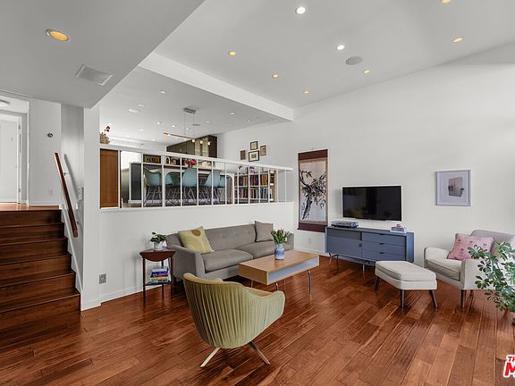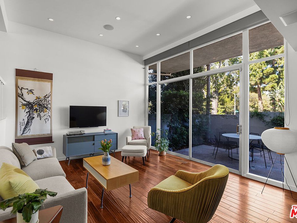 Stylish 3-Bedroom Mid-Century Townhouse in Prime Toluca Lake / Burbank Location. This 1960s mid-century townhouse perfectly combines timeless architecture with modern sophistication. Featuring 3 bedrooms and 2.5 bathrooms, including a convenient powder room on the main level, this home offers both style and functionality. Step inside to find soaring ceilings, teak laminate floors, and a terraced open kitchen and dining area designed for effortless entertaining. The remodeled kitchen showcases sleek cabinetry, Bosch dishwasher, stone tile, and premium fixtures, complemented by Lutron-controlled recessed lighting and distributed audio throughout. Floor-to-ceiling windows bathe the living room in natural light, opening to a private patio ideal for relaxing or dining al fresco. Upstairs, the elegant primary suite features a spacious balcony with a view, motorized shades, custom closet, and a modern bath with HansGrohe fixtures. Two additional spacious bedrooms and beautifully remodeled bathrooms featuring designer tile and mirrors round out the top floor. Enjoy peace of mind and comfort with dual-glazed windows, a fully upgraded HVAC system, tankless water heater, Nest thermostat, and newly re-piped ABS sewer lines (2025). Additional amenities include an attached two-car garage with EV charging outlet, ample storage space, in-unit laundry, and access to a sparkling community pool in the courtyard of this well-maintained townhouse complex. Located just minutes from Warner Bros., Universal Studios, Disney, the Los Angeles Equestrian Center, Whole Foods, and the lively shops, cafes, and restaurants of charming Toluca Lake Village and Magnolia Park, this home offers the perfect blend of design, comfort, and convenience in one of the Valley's most desirable neighborhoods. A rare opportunity to own a true mid-century gem, thoughtfully updated for today's modern lifestyle.