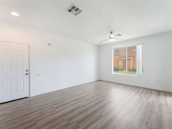 This may be the most beautifully remodeled condo in the neighborhood! Move-in ready 2-bed, 2-bath home on the 1st floor with new luxury vinyl plank flooring, new carpet, fresh paint, new doors, and modern light fixtures. The kitchen boasts resurfaced cabinets and new sleek quartz countertops—perfect for cooking or entertaining. A versatile flex space serves as an office, desk room, pantry, and doubles as a laundry room, adding convenience and functionality. Bathrooms feature new vanities and resurfaced enclosures. Just steps from the sparkling community pool, this open, wheelchair-accessible layout flows effortlessly. Enjoy gated community living with a clubhouse, pool, and parks. Close to Nellis Air Force Base, shopping, dining, and everyday essentials, this condo offers style, convenience, and value. Don’t miss your chance to own a home that’s as functional as it is stunning!