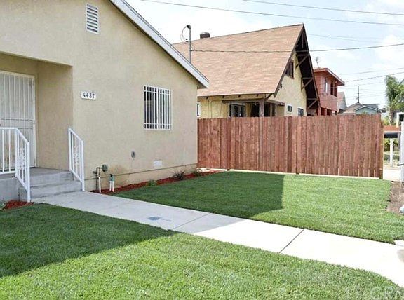 Bank owned. Beautiful near-new (2008) SFR in move in condition on quiet residential street. Looks like a brand new house. FHA/VA OK. Raised foundation, bright open floorplan, master, spot lighting, central air. New paint, carpet, SOD. Mirrored closets and ceiling fans throughout. Looks like a brand new house. 166' deep corner lot w/monstrous 80' deep west facing yard and patio. 203' of street frontage and room for 2, 3, or 4 car garage. 1 block to Vernon/Long Beach Metrorail station and Fred Roberts Park and Recreation Center, 2 blocks to Ascot Elementary, 4 minutes south of South Park and the Arts District. Zillow gives neighborhood a walk score of 77 (very walkable) and predicts 8.7% appreciation next year.