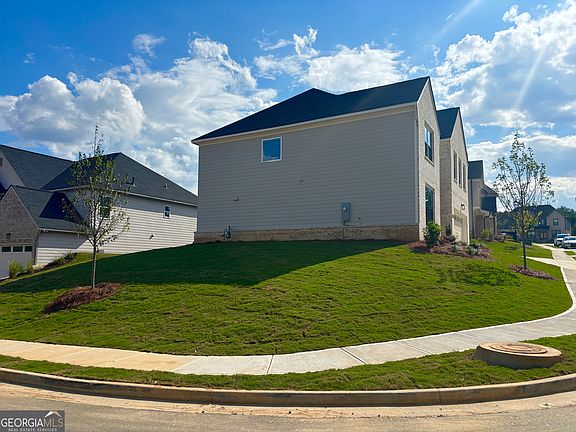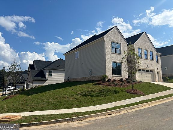 Built by SPI Homes - *Secondary Stock photos. Homesite 43 - this stunning new home in the Phase 2 expansion of Hosch Reserve showcases the Sardis Plan, featuring an all white brick front elevation, desirable corner lot, upgraded gold kitchen cabinet hardware, and an estimated completion date of Sept 2025. Offering 6 bedrooms, 4 baths, 3-car garage, level backyard with railing along retaining wall, and luxury finishes throughout. The main level includes an open-concept living room with a decorative electric fireplace, built in bookshelves, and a luxury kitchen with quartz countertops, a large island with pendant lighting, soft-close cabinets, Samsung stainless steel appliances, a gas cooktop with wall-mounted pasta faucet, wall oven, microwave, and a decorative vent hood. Additional highlights include a bedroom/flex room on the main floor with coffer ceiling, mudbench, & walk-in pantry. Upstairs, the oversized primary suite features a spa-like bath with a freestanding soaking tub, quartz countertops, and an expansive walk-in closet. A secondary bedroom suite and three additional bedrooms with ample space, while the upstairs laundry room adds convenience. Elevated details throughout include shiplap accents, crown molding, coffered ceilings, judges paneling, LVP flooring, blinds on all operable windows, and an included refrigerator. Located in the highly sought-after Seckinger High School district, Hosch Reserve is a vibrant swim, cabana, and pickleball HOA community perfect for active lifestyles. Use Apple Maps GPS address: 3105 Old Thompson Mill Rd. to explore this extraordinary new home today!