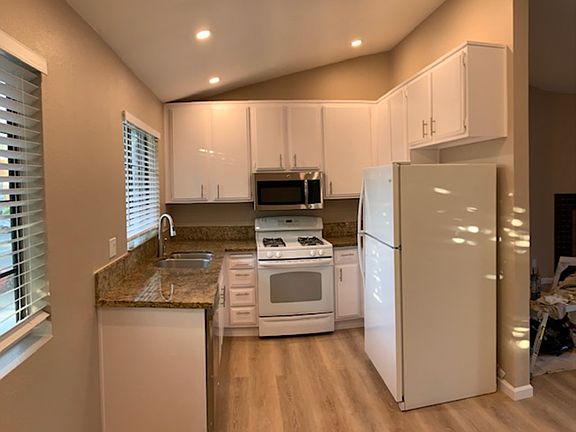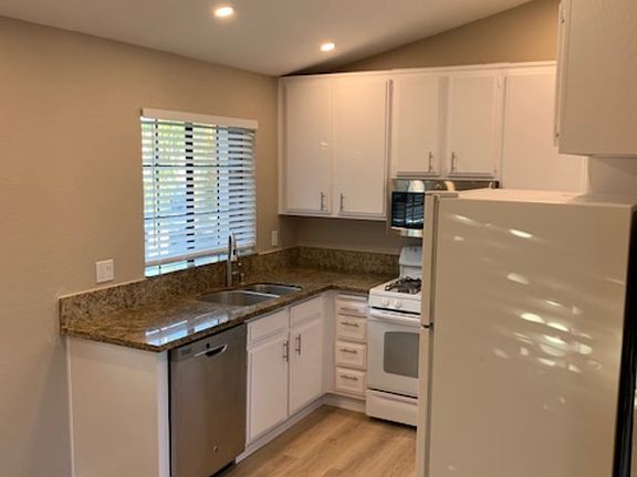 This is a 2nd floor, upstairs front corner apartment. Wood laminate flooring throughout. Vaulted ceilings in the kitchen and living room. Wood burning fireplace. Kitchen has quartz countertop, gas stove, refrigerator, microwave and DW. Refrigerator has ice maker & water line. This apartment does come with a 1 car garage with one additional parking spot outside. Sorry, no pets. Renter's insurance required. 1 year lease. Water/sewer & trash paid by the owner. Renter's insurance is required. Additional rent of $50/m per occupant more than 2.