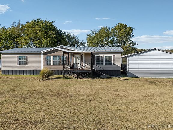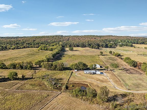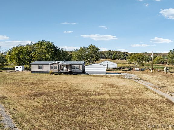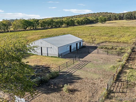 Welcome to your dream horse property, nestled perfectly between Pryor and Claremore, OK with effortless access to Tulsa, Springdale, MAIP. this stunning 11-acre mol estate offers a harmonious blend of modern comfort and pastoral charm. The spacious 1,680 sqft home built in 2014 features 3 bedrooms and 2 baths, with an open, airy layout with seamless living, dining, and kitchen areas with a western accents sure to be the envy of all your friends. The property includes a newer well-maintained horse barn with circle drive for ease of loading and unloading livestock. a fenced pasture is ideal for your equine companions with trees along the fence lines for shade on those warm summer days. The property also has a small pond and a 3 car detached garage providing ample space for vehicles, tools, or additional storage. Whether you are an avid horse enthusiast or simply seeking a serene country escape with modern amenities, this property offers all. Don't miss out on the chance to call this beautiful estate your own. Temporary panels in and around the barn will not stay. Some equipment may be available for an additional cost. Additional land may be available.