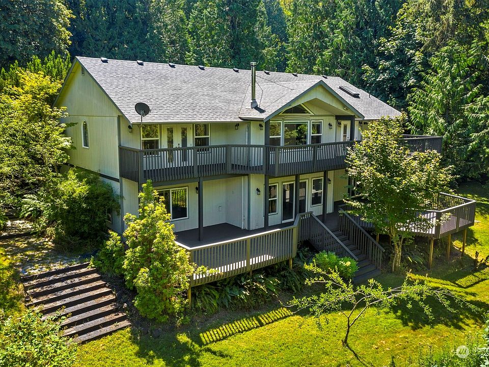 Escape to tranquility on nearly 5, ultra private acres! Modern updates throughout; beautiful kitchen, spacious primary suite, refreshed bathrooms, and generous lower level with 2 bedrooms and a huge bonus room! Enjoy expansive decks, landscaped grounds, tons of garden space, a 2-car garage, metal shop, and whole-house, automatic generator! Room to add a sport court, or fence in pasture space and bring the animals! Whether you're enjoying a quiet evening in, or entertaining friends, this home offers the perfect layout for every occasion. Located in a peaceful and secluded setting, yet just a short drive from town, this home balances privacy and convenience perfectly. Easy access to amenities, great Griffin schools, and salt water!
