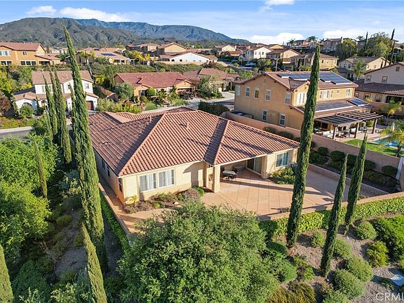 Welcome to your single story dream home in the highly sought-after Morgan Hill Estates! This beautifully upgraded 4-bedroom, 3-bathroom turn-key home offers the perfect blend of comfort, style, and functionality. Situated on a private corner lot with no rear neighbors, you’ll enjoy peaceful views of Big Bear Mountain and Temecula’s famous hot air balloons. Step through the charming courtyard entrance into a home filled with thoughtful upgrades, including gorgeous walnut floors, crown molding & plantation shutters throughout, and additional insulation in the interior walls for added comfort and energy efficiency. The open-concept living area features a family room with a cozy fireplace, custom built-ins, and ceiling fan, leading into a chef’s kitchen complete with stainless steel appliances, butler’s pantry, walk-in pantry, and plenty of storage. Enjoy the comfort of the primary suite, featuring custom closets, double sinks, humidity control, and a spa-like ensuite bathroom. All 4 bedrooms have mirrored closet doors, and one guest room includes its own private ensuite, perfect for visitors or extended family. The office/den can be converted to a 5th bedroom or used as a playroom, teen room, or whatever best fits your families needs. The laundry room features a sink, storage cabinets, and a walk-in closet. Outside you’ll find a low-maintenance yard ideal for relaxing or entertaining with a covered patio and ceiling fan, plus a drip sprinkler system in both the front and back yards. The 3-car tandem garage includes epoxy flooring, built-in cabinets, and overhead storage. Energy-conscious buyers will appreciate the tankless water heater, Quiet Cool whole house fan, water softener, and added insulation for year-round efficiency and comfort. Plus, enjoy peace of mind with a wired security system, surveillance cameras, and alarm system. Additional highlights include a new refrigerator, washer & dryer, and a location that’s walking distance to a neighborhood park and close to all that Temecula has to offer. This home checks every box—location, luxury, and livability. Come see it for yourself!