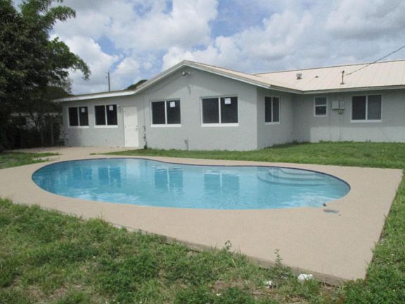 Charming Ranch Home With additional Oversized 75' Driveway that is perfect for a boat or RV. Completely Renovated in 2016 with open kitchen with wrap around granite countertops, hardwood cabinets, soft-close drawers, and Samsung stainless steel kitchen appliances! HUGE (half acre) LOT and in-ground 30X16 heated swimming pool with textured decking! Brand new impact rated hurricane windows and doors throughout along with a 17 Seer 3.5 Ton A/C system. Spacious dining room and family areas. 3 BDRMS, two full, renovated baths and one additional office/guest suite. City Water and well for irrigation. No HOA fees.