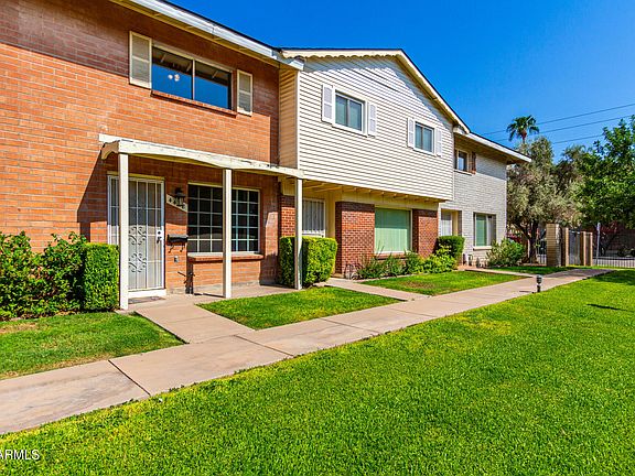 Welcome to this 2 bedroom, 1.5 bath townhome in a prime Phoenix location. The main level features wood-look tile flooring, a spacious living area, and a kitchen with stainless steel appliances, and abundant cabinet storage. Convenient in-unit laundry and a guest bath are also on the first floor. Upstairs you'll find two generously sized bedrooms and a full bath with tile surround. Enjoy a private enclosed patio, perfect for relaxing or entertaining, along with covered parking. The community includes a refreshing pool and is ideally situated near downtown Phoenix, ASU, Sky Harbor, and major freeways, providing quick access to shopping, dining, and entertainment. A great opportunity to personalize and make your own in a central location.