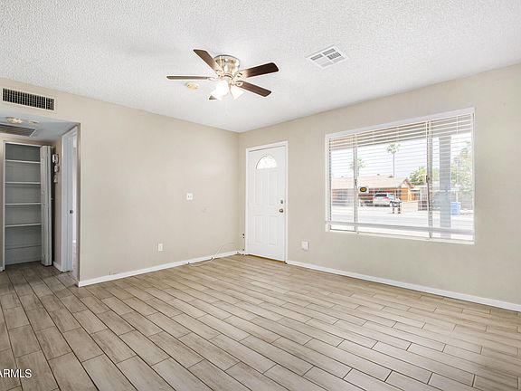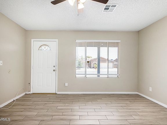 Fantastic opportunity to own this charming 3 bed, 2 bath single-level home! Discover an inviting interior showcasing tons of natural light, a neutral palette, and wood-look tile flooring throughout. With the family room and living room effortlessly flowing into the kitchen, it's an ideal space for entertaining guests or enjoying quality time! The eat-in kitchen has elec range, a breakfast bar, and white cabinetry w/pull-out drawers. Large primary bedroom includes a walk-in closet and a full bathroom for added comfort. Check out the backyard, offering a covered patio to relax after a busy day! Adding your creative touch, you can make it a complete outdoor living space. Great Phoenix location! Conveniently close to schools, shopping, dining, entertainment, and freeways. Don't miss this gem!
