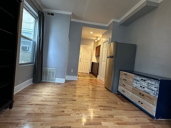 studio on 2 nd fl with full bath and kitchen .wood fl and central air and laundry in the basement .
