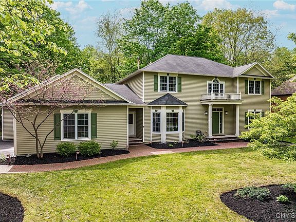 Spruce Ridge spacious colonial on private one acre lot! Expect to be impressed with this beautifully designed transitional colonial in the beautiful Spruce Ridge subdivision of Manlius! This home offers all the amenities you have been looking for including high ceilings, open concept kitchen with breakfast bar, Corian counters, updated appliances and beautiful breakfast room with extra large windows overlooking large private treed lot. First floor mudroom and updated half bath, grand entry foyer, formal dining room and bonus office/den, extra large family room with lots of natural light. Finished lower level has an added 1,200+ sqft of finished living space with gas fireplace, huge gameroom, full bath and potential for 5th bedroom! Enjoy 2nd floor en-suite primary bedroom and three additional bedrooms plus newly updated hall bath and convenient 2nd floor laundry center. All this in award winning F-M school district and less than 20min to SU, downtown and major highways! Open House Saturday May 24th 10am-1pm!