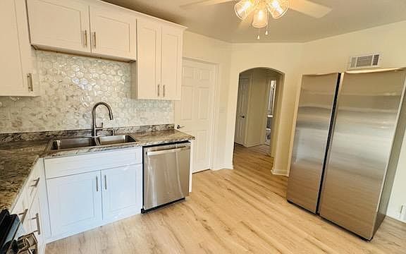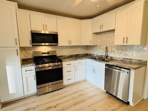 Large fenced-in yardQuartz countertopsSeparate dining roomStylish backsplashNew flooringShaker cabinetsNew appliances