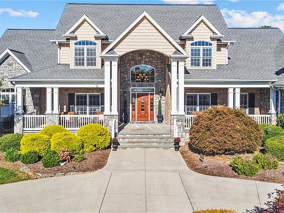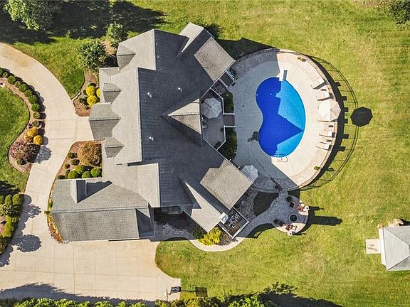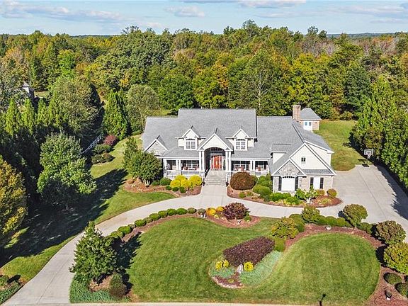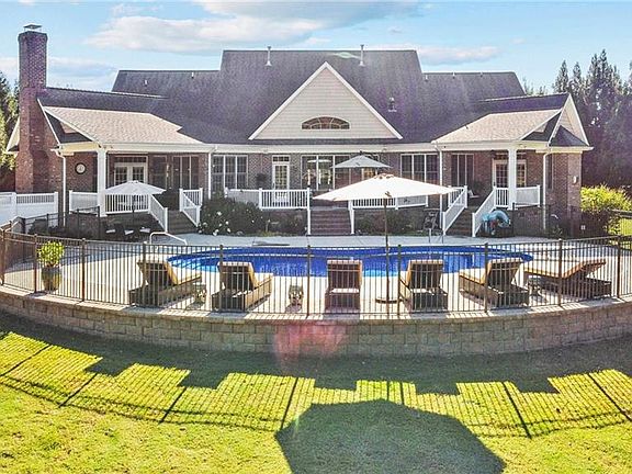 Prestigious custom built home situated on 1.54 private acres in S. Alamance! Features 4 Br’s, 3.5 Baths & over 4,800 sq feet of gracious living space. Private back yard oasis with inground salt water/heated pool, fenced pool deck, paver patio with fire pit, & 3 rear covered porches perfect for entertaining. Pool views from every window at back of the home. Exquisite details include 3 stunning hand laid floor to ceiling stone fireplaces, gorgeous hardwoods floors, custom built in’s in living & study, extensive moldings, archways & trim work, in-laid window blinds, chef’s kitchen w/custom cherry cabinets, granite counter tops, stainless steel appliances, & 3 pantries. Expansive primary suite on main level with his/hers custom closets, separate study/sitting area, en suite bath with walk in shower, jetted tub & dual vanity. Huge covered front porch overlooking circular drive, 3 car garage, brick storage bldg, irrigation, security system w/window & door cameras & 2 tankless water heaters.