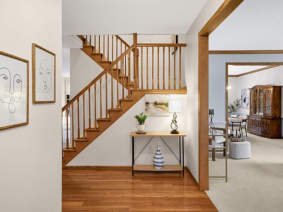 Stunning two-story home in the heart of Shoreview - just a short stroll to Snail Lake! Enjoy a lifestyle-friendly floorplan with formal living spaces, sun-drenched rooms, & an inviting kitchen featuring wood cabinetry with 42” uppers, a movable island, walk-in pantry, & newer stainless appliances. The family room centers the home with a cozy gas fireplace & walkout to a screened porch - perfect for sipping your morning coffee or hosting friends for afternoon beverages. Unwind in the upper-level primary suite that boasts a sitting area, jetted tub, dual sinks, & a spacious walk-in closet. Two additional bedrooms plus a versatile bonus room offer endless possibilities. The lower level includes a beautiful guest room, an amusement room with 2nd fireplace, incredible storage plus space for a home gym or lower-level kitchen/bar area. Enjoy a 3-car garage, a welcoming front porch, & pretty curb appeal - close to parks, trails, Snail Lake, Kowalski’s, Starbucks, the Shoreview Community Center, dining, and quick highway access to both Minneapolis & St. Paul.