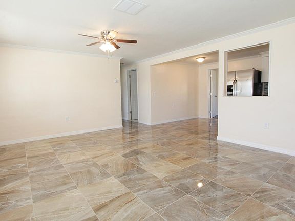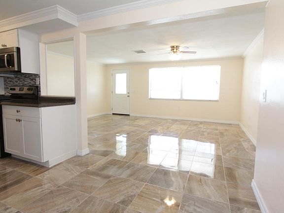 Renovated 3 bedroom 2 bathroom home. New kitchen with brand new stainless steel appliances(still wrapped in foil). Beautiful porcelain tiled living room with crown molding; dark espresso laminate flooring in bedrooms. Brand new lighting and fans. Both bathrooms have been remodeled as well. New garage door opener, new roof, new water heater and newer A/C. Huge fenced in backyard with privacy fence, with possibility of storing trailers/boats in the oversized back yard. Must see!